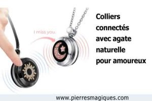 colliers-connectes-agate Colliers connectés pour amoureux avec agate naturelle Voir aussilégende et symbolisme de la pierre agateDécouverte d'une pierre rare en forme de Macaron le gloutonSymboles utilisés pendant les rituels magiquesQuels sont les noms de l'agate?Comment utiliser le cristal de roche en soins naturelsPropriétés et pouvoirs des pierres en magie rouge